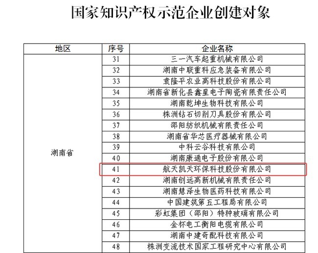 近日,国家知识产权局公示2025—2027年知识产权强国建设示范创建对象评审结果,航天凯天环保科技股份有限公司凭借在知识产权创造、运用、保护和管理方面的体系化建设与突出成果,成功入选“国家知识产权示范企业创建对象”,这是公司继获评国家级高新技术企业、国家“绿色工厂”、国家工业产品绿色设计示范企业、国家知识产权优势企业等荣誉后,获得的又一项国家级重要荣誉。