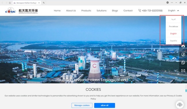 绿启寰宇,智联世界。航天凯天环保国际官方网站(网址:https://www.kt-enviro.com/)正式全球上线运行。这一举措标志着公司在拓展全球市场、提升国际品牌影响力方面迈出了重要一步,为海外客户搭建起高效便捷的沟通桥梁。 航天凯天环保作为专注于环保领域的领头企业,深耕行业二十七年,产品与服务已覆盖国内各地。随着全球经济一体化进程加快,海外市场需求持续增长,国际网站的上线成为公司发展的有效助力。 新上线的国际网站采用多语言版本设计,涵盖英语、西班牙、阿拉伯语、俄语四种语种,内容涵盖公司介绍、核心产品、解决方案、成功案例及全球联系方式等板块。网站界面简洁直观,海外用户可快速获取所需信息。 国际网站不仅是品牌展示的窗口,更是服务全球客户的平台。未来,公司将以网站为依托,整合全球资源,优化海外服务网络,为国际客户提供更具竞争力的产品与定制化解决方案。 此次国际网站上线,将助力公司进一步融入全球产业链,提升国际市场份额。公司也将以此为新起点,秉持“以创新为源动力,创造客户需求,满足客户为需求”的理念,持续环保技术升级,为全球客户创造更大价值。