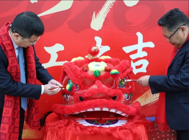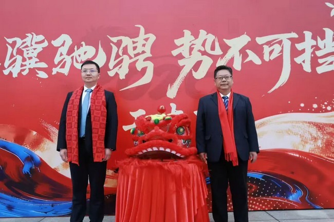 醒狮点睛环节将现场氛围推向高潮!湖南航天党委委员、副总经理,航天凯天党委书记、董事长郑自儒,航天凯天党委副书记、总裁姜晖登台为祥狮点睛,为公司新一年发展注入蓬勃动力。一点左眼,金光闪闪,志在乾坤;二点右眼,鸿运灿灿,气吞山河。醒狮腾跃,瑞气盈门,既寓意着航天凯天唤醒生机、开启鸿运,更象征着公司在新的一年必将骏马日新、扶摇直上、宏图大展、再创辉煌!